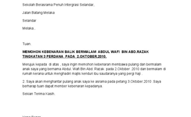 Surat Kiriman Rasmi Permohonan Untuk Tinggal Di Asrama Sekolah Pdf